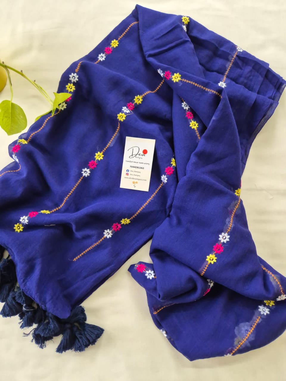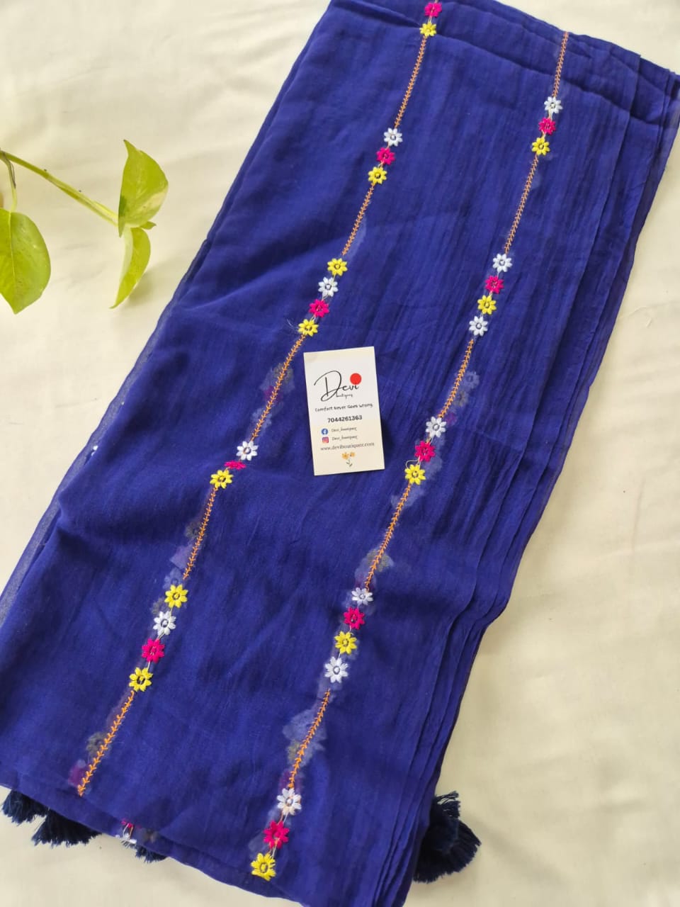 Mul cotton saree with flower embroidery all over .